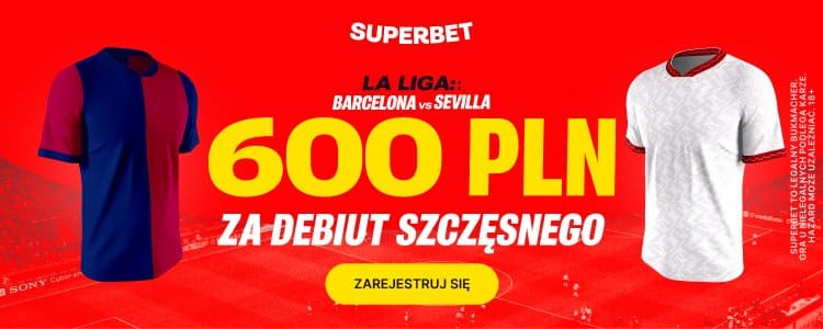 Specjalną promocję na niedzielny mecz przygotował także Superbet, który oferuje aż 600 zł bonusu, jeżeli w Barcelonie zadebiutuje Wojciech Szczęsny. Nie jest to niemożliwy scenariusz, choć bardziej prawdopodobny jest taki, w którym polski bramkarz siada na ławce rezerwowych. Co trzeba zrobić, aby zgarnąć bonus?