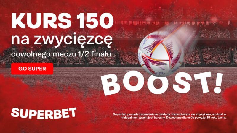 Kurs 150.00 na zwycięzcę meczu w Superbet. Z kodem GOAL!