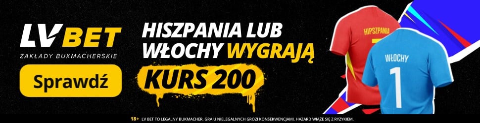 LVBET przygotował na hit fazy grupowej Euro 2024 świetną promocję – kurs 200 na wygraną Hiszpanii lub Włoch. Aby skorzystać z oferty należy przede wszystkim założyć konto w LVBET z kodem promocyjnym GOAL.