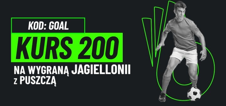 - Postaw pierwszy po rejestracji konta zakład pojedynczy na wygraną Jagiellonii w meczu z Puszczą