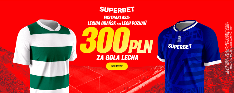 Bardzo atrakcyjną ofertę na sobotnie spotkanie przygotował Superbet. Bukmacher oferuje aż 300 zł bonusu za wytypowanie choćby jednego gola dla Lecha w meczu z Lechią Gdańsk. Poniżej wyjaśniam jak skorzystać z tej oferty.