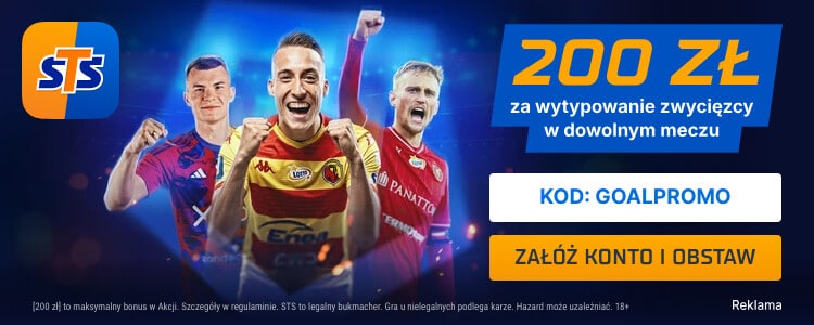W tym miejscu warto dodać, że nasz kod do STS GOAL umożliwia również odebranie bonusów o wartości do 660 zł, zakładu bez ryzyka do 100 zł oraz skorzystanie z wysokich kursów na największe wydarzenia sportowe. Naturalnie można to wykorzystać w przypadku obstawiania Ekstraklasy.