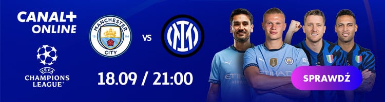 Jeden z hitów 1. kolejki Ligi Mistrzów pomiędzy Manchesterem City i Interem Mediolan rozegrany zostanie w środę (18 września) o godzinie 21:00. W telewizji mecz będzie można obejrzeć „na żywo” na kanale CANAL+ Extra 1. Transmisja dostępna będzie także w usłudze CANAL+ online. Dostęp do transmisji wszystkich spotkań Ligi Mistrzów można uzyskać już w cenie 65 zł miesięcznie przy rocznej ofercie. Z promocji można skorzystać rejestrując konto za pośrednictwem naszej strony.