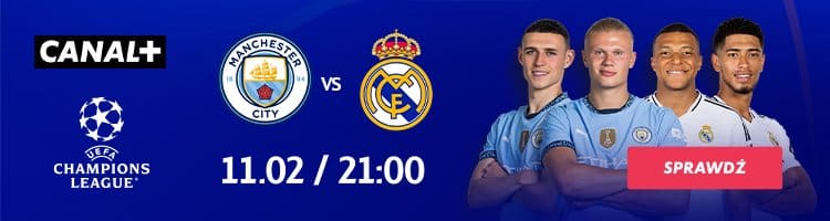 Hit fazy play-off Ligi Mistrzów Manchester City – Real Madryt rozegrany zostanie we wtorek (11 lutego) o godzinie 21:00. Transmisja w telewizji będzie dostępna na jednym z kanałów CANAL+ Extra. Za pośrednictwem internetu mecz można z kolei obejrzeć dzięki usłudze CANAL+ online. Pakiet Super Sport, w którego skład wchodzą wszystkie kanały CANAL+, można uzyskać teraz w cenie 65 zł miesięcznie w ofercie na rok.