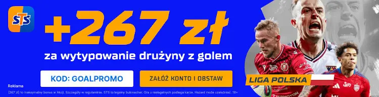 Chcesz postawić na to spotkanie? Załóż konto w STS z kodem promocyjnym GOALPROMO i zyskaj 267 zł bonusu za poprawne wytypowanie drużyny z golem w dowolnym meczu Ekstraklasy. Sprawdź szczegółowy regulamin opisywanej promocji.