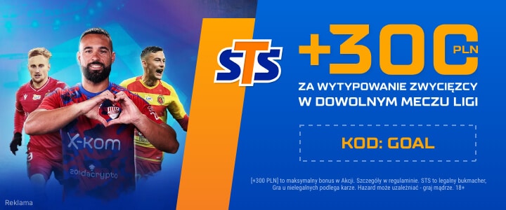 Bukmacherzy w dalszym ciągu nie są przekonani do Śląska Wrocław. Pomimo faktu, że to oni są liderem Ekstraklasy z wyraźną przewagą punktową, za faworyta niedzielnego starcia uznawana jest właśnie Pogoń Szczecin. Kurs na zwycięstwo gości wynosi około 2.60. W przypadku ewentualnej wygranej Śląska jest to natomiast nawet 2.75. Kurs na remis waha się z kolei między 3.25 a 3.40. Jeśli nie masz jeszcze konta w STS to podczas jego zakładania podaj kod bonusowy GOAL – będziesz mógł postawić na ten mecz zakład bez ryzyka do 100 zł.