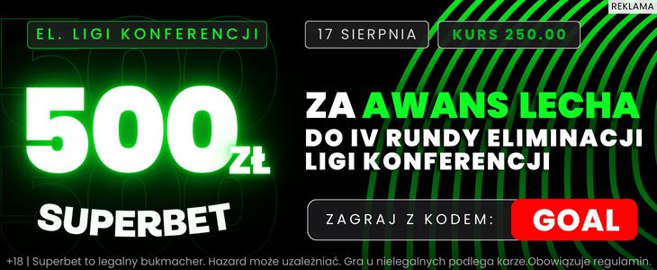 Superbet przygotował na czwartkowy mecz Lecha świetną ofertę – kurs 250.00 na awans Kolejorza do kolejnej rundy. Aby skorzystać z oferty należy zarejestrować konto z kodem promocyjnym GOAL. Poniżej wyjaśniamy jak skorzystać z promocji.