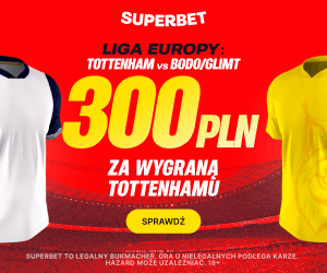 Tottenham Hotspur jest zdecydowanym faworytem czwartkowego spotkania. To dobra okazja do skorzystania ze specjalnej promocji Superbet, który oferuje kurs 150 na wygraną Tottenhamu. Stawiając tylko 2 zł można zgarnąć aż 300 zł bonusu. Oferta obowiązuje przy podaniu kodu GOAL podczas rejestracji. Poniżej krok po kroku wyjaśniamy co trzeba zrobić.