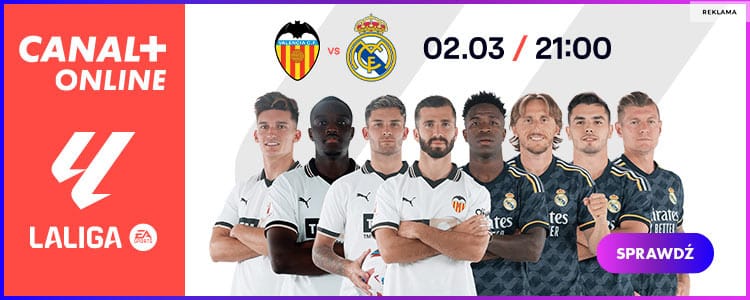 Spotkanie transmitowane będzie na kanale telewizyjnym Canal+ Sport 2. To starcie można zatem obejrzeć również przez internet w usłudze CANAL+ online. Zachęcam do założenia konta za pośrednictwem naszego portalu i następnie wykupienia pakietu ze wszystkimi kanałami CANAL+, Eleven Sports oraz Polsat Sport Premium na cały rok z góry za 648 zł (54 zł/mies. w ofercie rocznej) zamiast płacić 74 zł/mies. (cena regularna), dzięki czemu w tym okresie zaoszczędzisz aż 240 zł. Początek meczu na Estadio Mestalla już w najbliższą sobotę, 2 marca o godzinie 21:00.