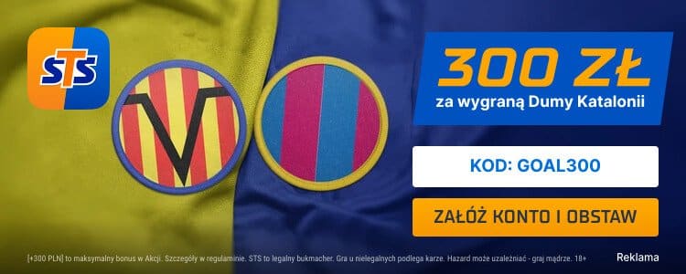 Eksperci bukmacherscy przekonują, że większe szanse na zwycięstwo w niedzielnej batalii mają gospodarze. Typ na zwycięstwo Villarreal kształtuje się w wysokości 3.55-4.50. Remis wyceniono na 3.90-4.30. Z kolei wariant na ewentualną wygraną FC Barcelony oszacowano na 1.81-1.85. Przy okazji tego starcia warto zwrócić uwagę na promocję STS. Rejestrując konto w STS podaj kod promocyjny GOAL, a będziesz mógł odebrać zakład bez ryzyka do 100 zł oraz bonus od wpłat do 600 zł.